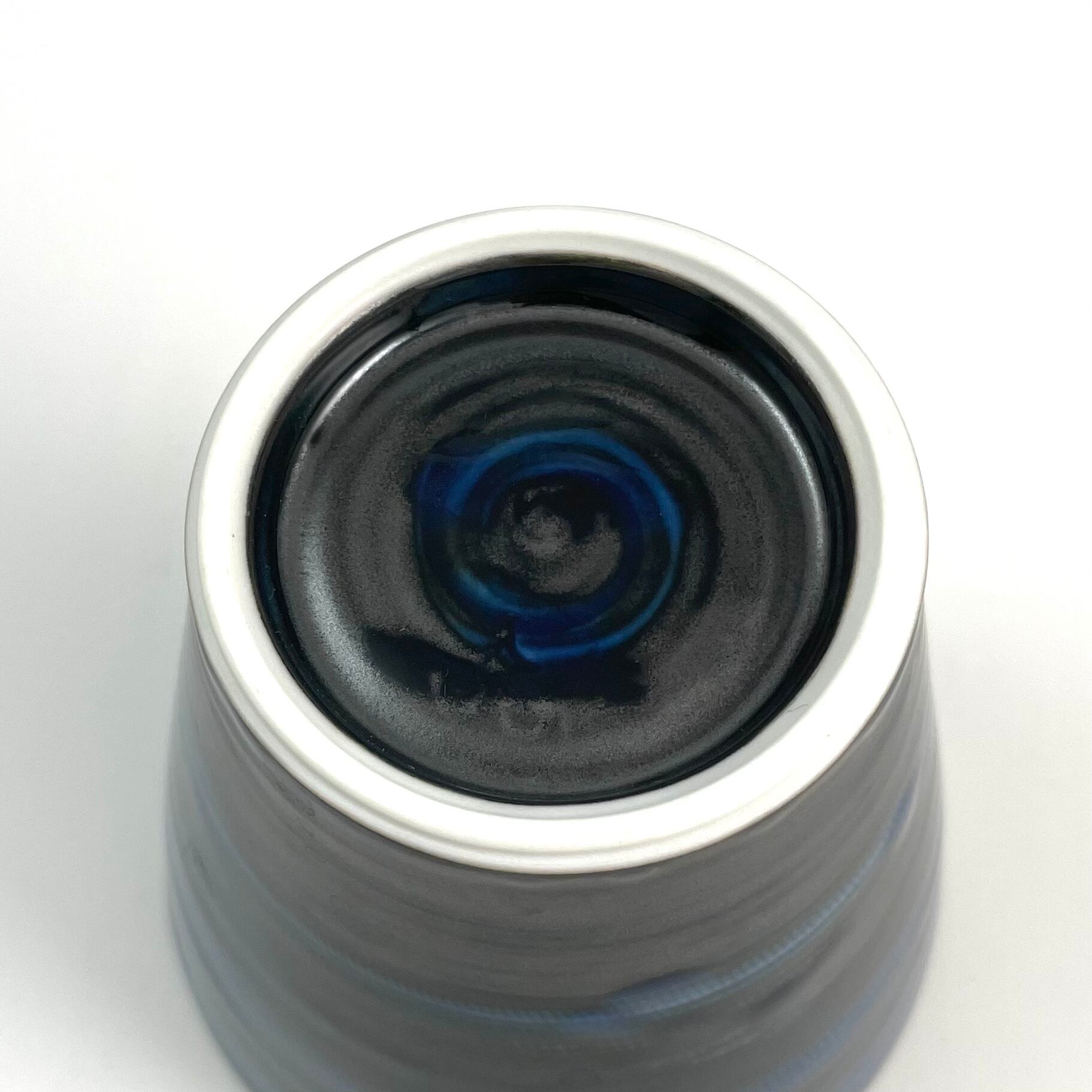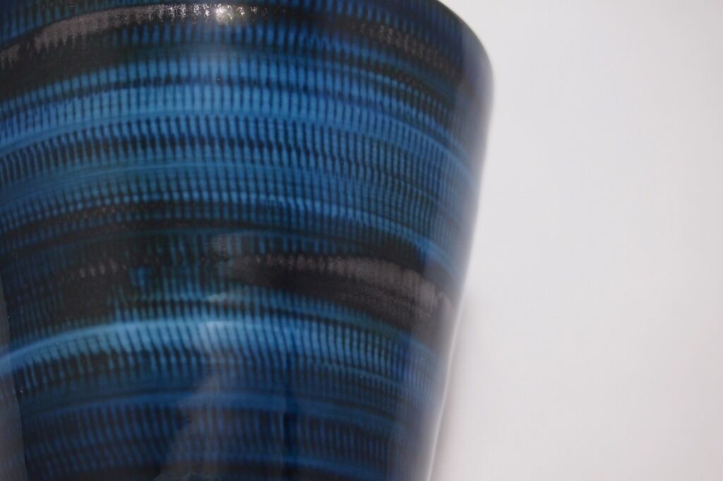青や藍、黒の釉薬をブレンドして縞模様にした土台の上に